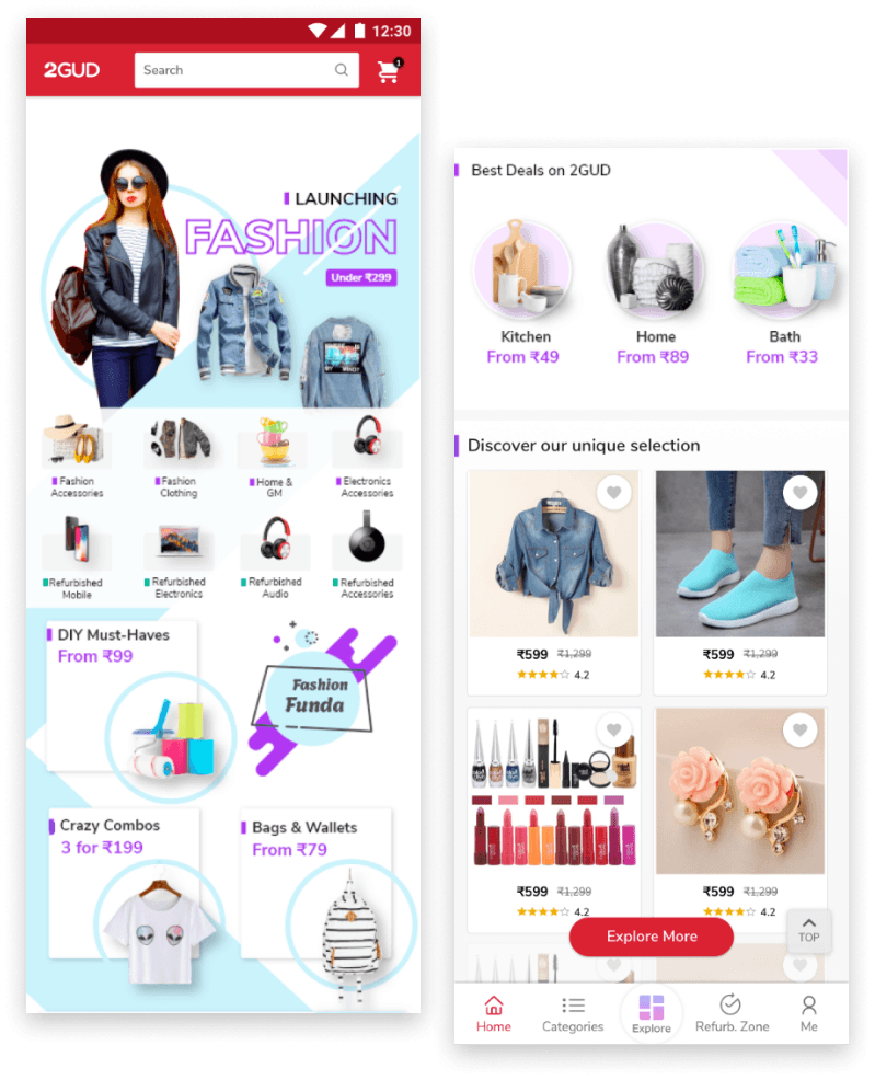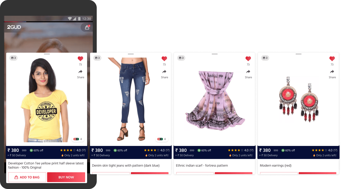 2GUD is a value-conscious marketplace, launched by Flipkart in 2018, with the vision of making the “bazaars of India”, digital. This translates to providing great unbranded selection that you would typically find in local markets, at value.