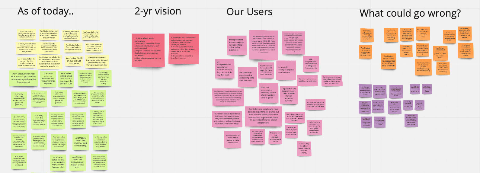 Armed with the knowledge of our users’ needs and the barriers to entry for e-commerce in tier 2,3&4 towns, it was important for all the key stakeholders to be on the same page in order for us to decide on what we should be doing.