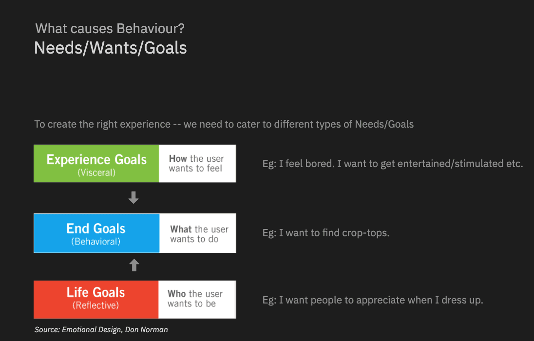 Being a spiritual seeker, I often question what causes one to behave the way they do. While I’ve found some form of an answer, I was elated when I could connect my experience to what Don Norman, the veteran in UX, had to say about it. In his book, Emotional Design, Don mentions that a person has 3 types of goals which are relevant for designers & product makers.