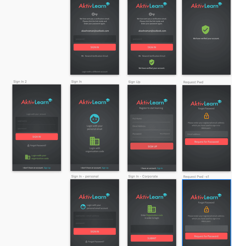 I have designed about 80 screens for all the flows of the app – starting from user signup to training course completion.