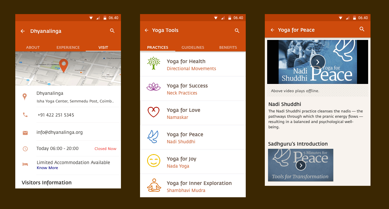 There were several yoga related practices that people needed to access on the go. As a result, the foundation wanted to provide a mobile app to help spiritual seekers to access yoga offerings, everyday.
