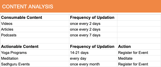 I did a content audit of the site and looked at content that is actionable and consumable. I also sought how frequently certain content was updated from the team.