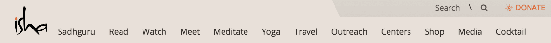 Old navigation on isha.sadhguru.org. — “How do I accommodate all this in the app?” 🤔