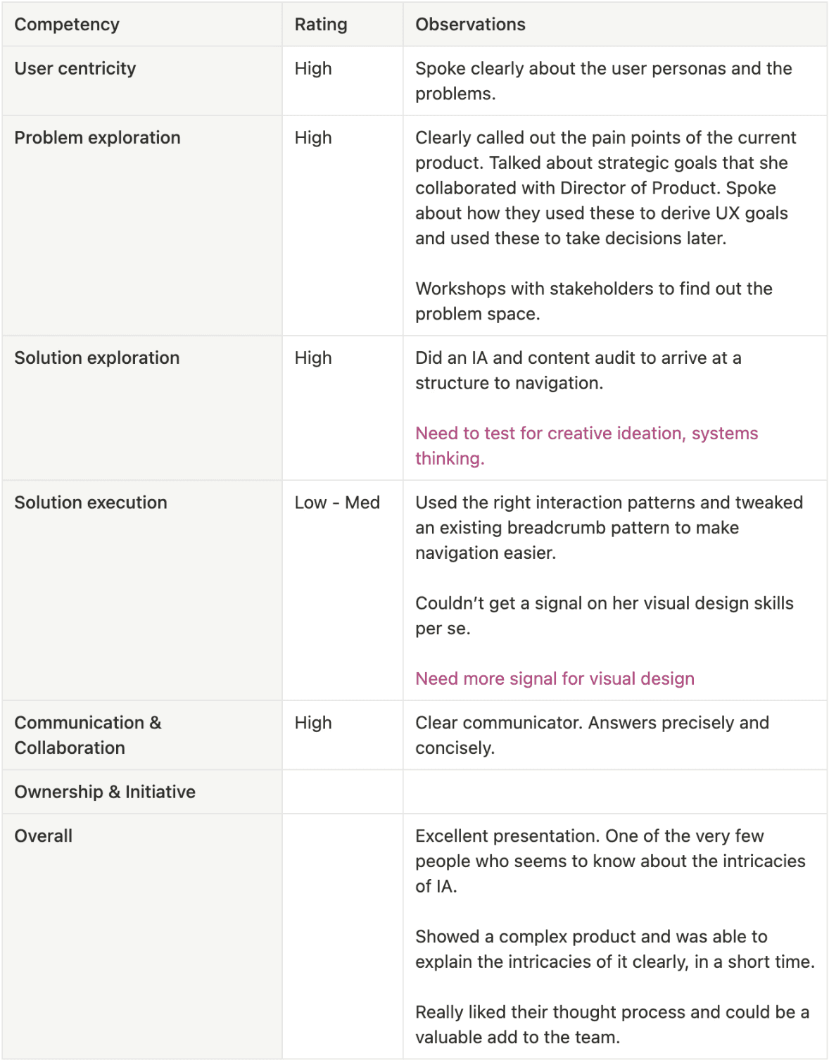 Using the design competencies to get structured feedback from interviewers