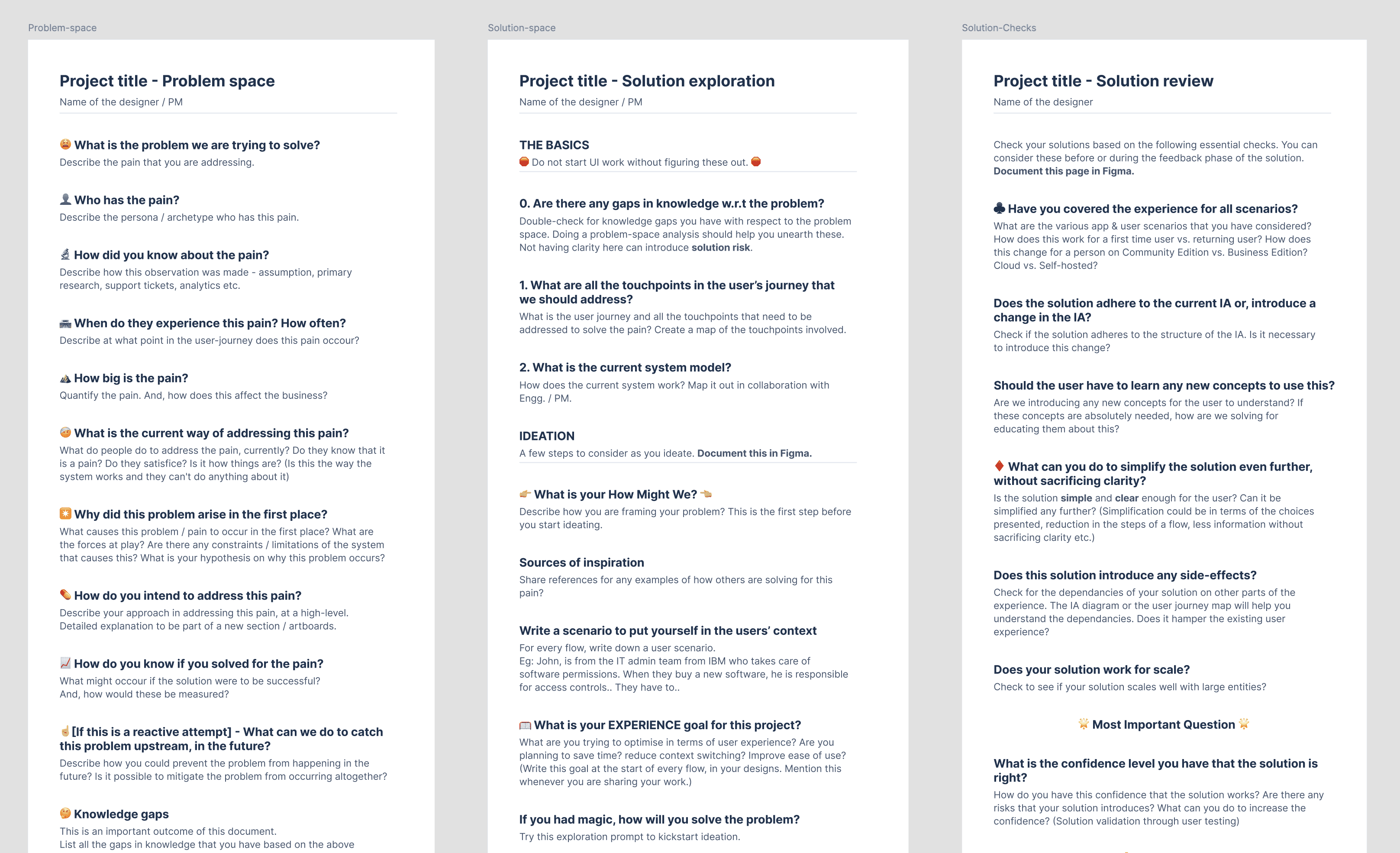 I created a set of process templates that help a person to not only dig deep at the problem-space but have rigour in their solutions.